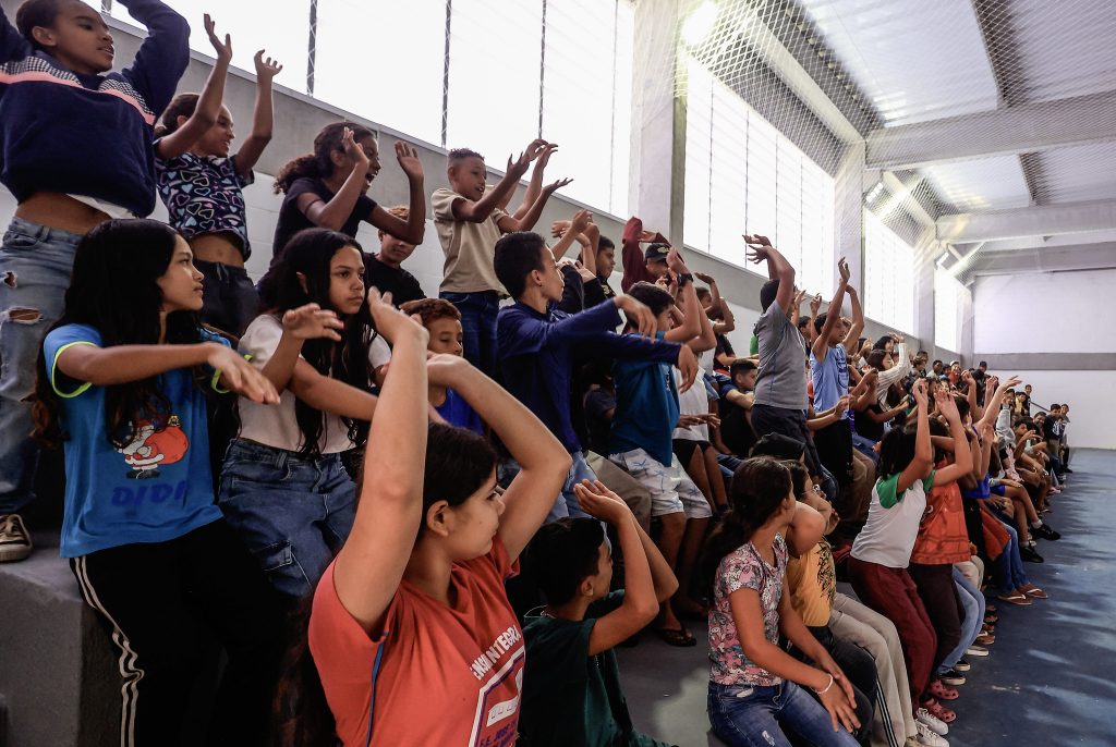Os colegas também concordam ao dizer que a escola tem um espaço acolhedor. “Estamos em uma escola grande, e que faz a gente se sentir bem de estar aqui”, afirma Pietro. “Eu gostei que a escola é bem grande e vai poder atender mais alunos. E a comida daqui é muito boa”, complementa Ana Maria.