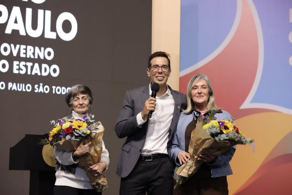 Realizada no Dia do Professor, a cerimônia também homenageou docentes que prestam serviços à rede estadual há várias décadas. Representando colegas de diversas regiões, Sandra Regina Valadão, professora há 45 anos, e Deise Maria Calazans Ribas, com uma carreira de 40 anos no ensino, receberam flores do secretário Renato Feder.