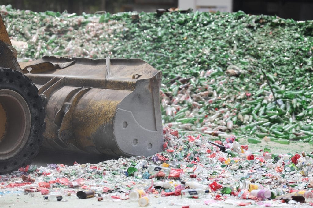 Polícia Civil destrói mais de 100 mil garrafas usadas em falsificação de bebidas alcoólicas. Foto: Alex Silva/Governo de SP